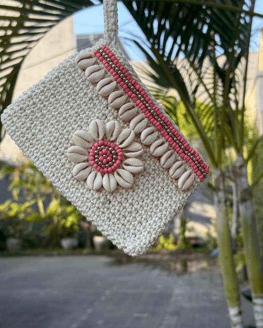 Gehäkelte Bali Tasche mit Muscheln - Pink